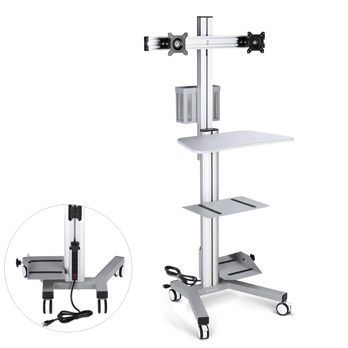 2-Monitor Mobile PC Workstation with Power Outlets (Preorder)