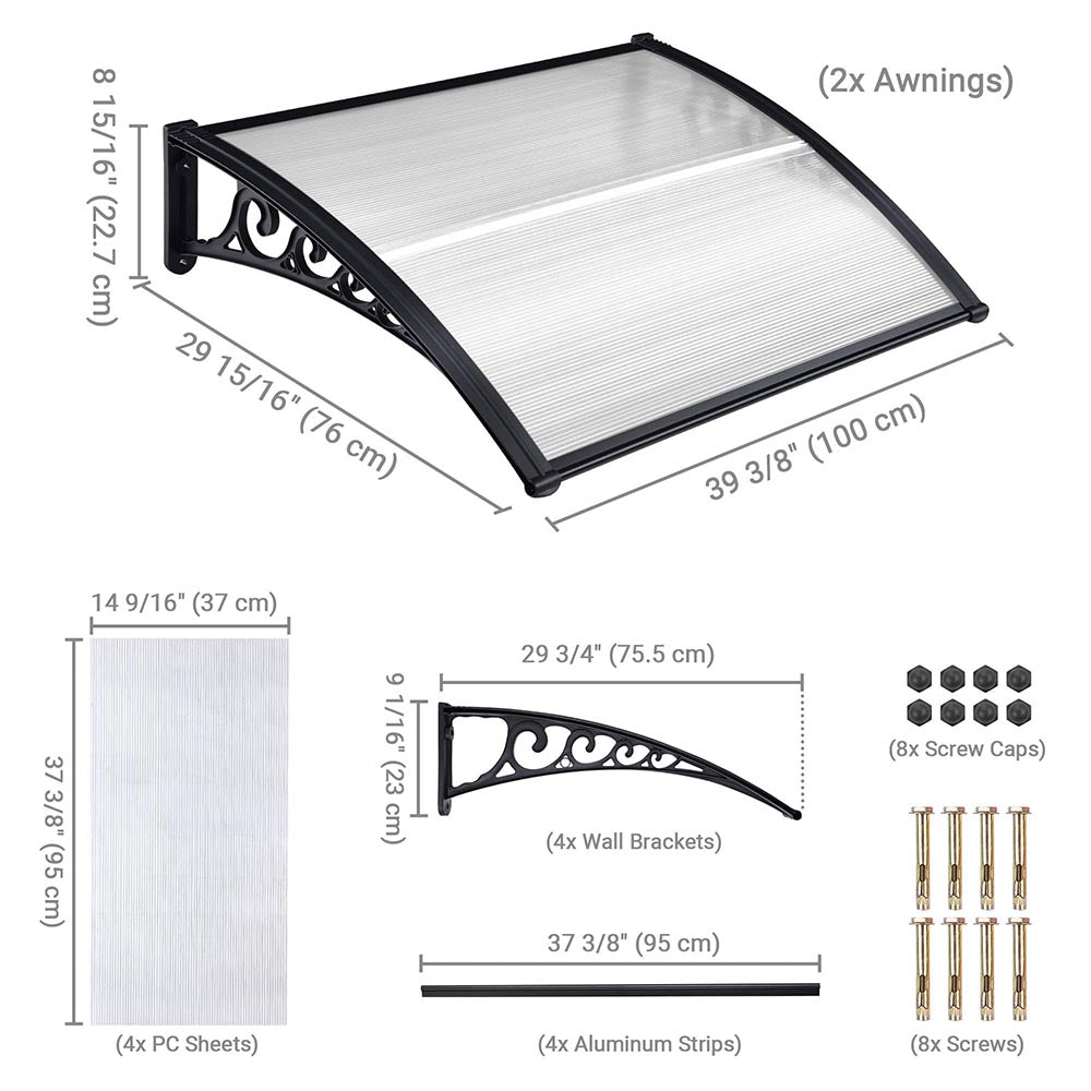 - Single Awning Dimension(LxWxH): 39 9/16" x 38 3/16" x 10 1/4" (100.5x97x26cm)