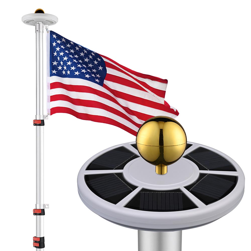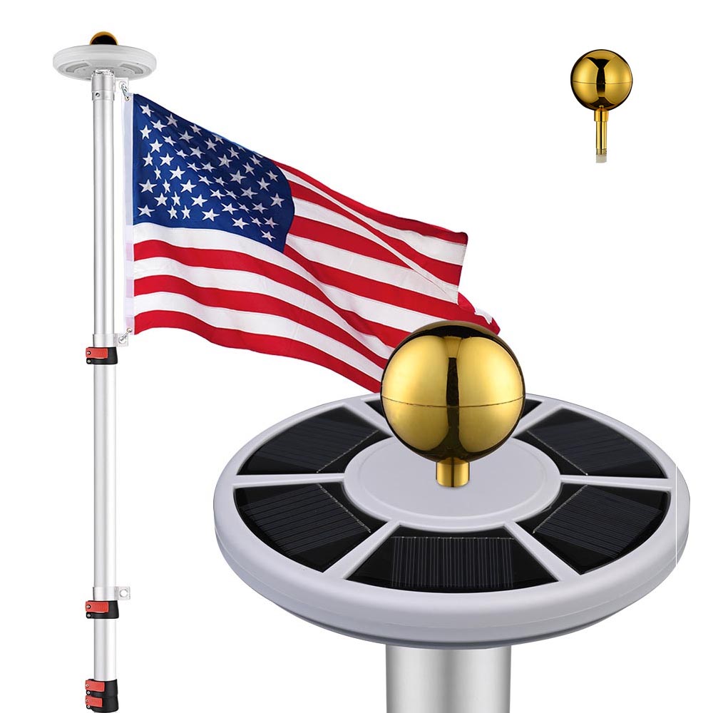 Telescoping Flagpole Kit with Light Solar Powered (20ft,25ft,30ft Options)