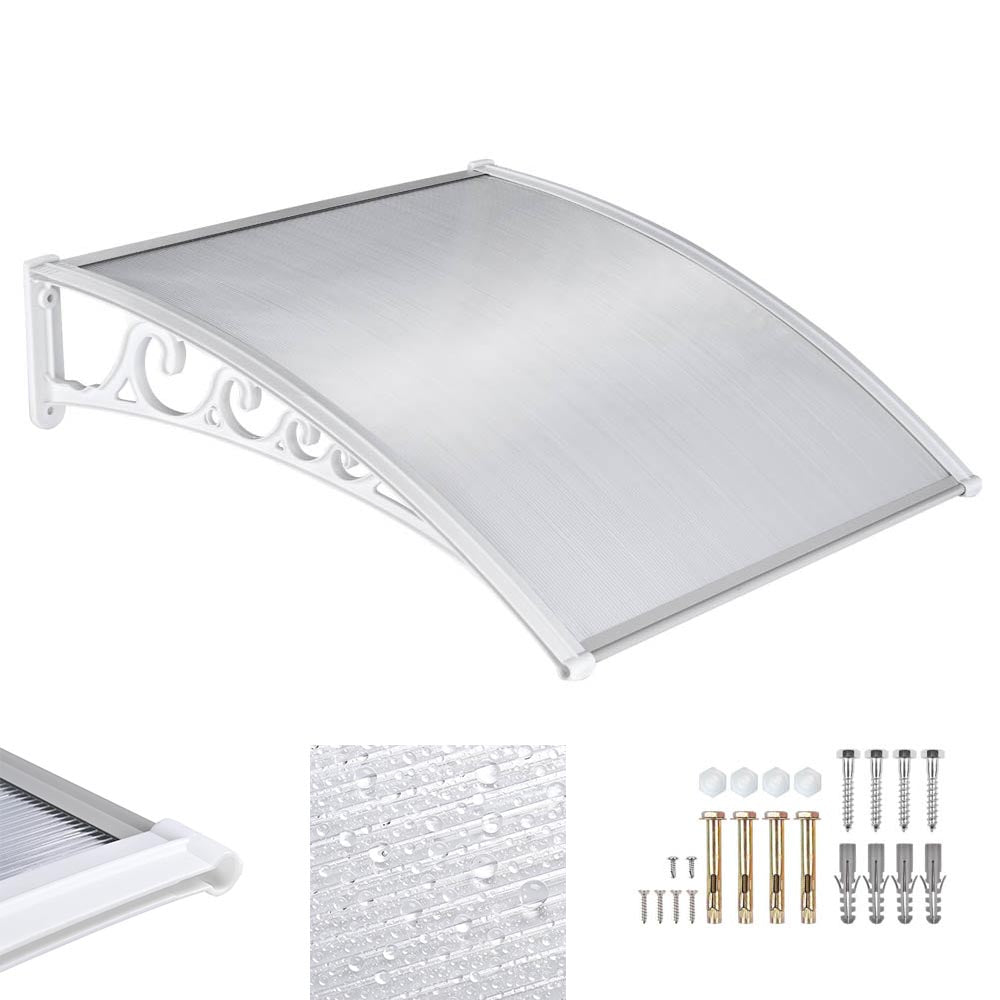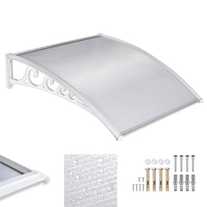 This high quality 3' One-piece Patio window Awning is made with clear hollow polycarbonate sheet with UV protection and strong plastic alloy brackets that can protect your entry doorway or windows. Polycarbonate sheets can easily be trimmed to your required width. Designed for rain and moderate snow load, can be used as window awnings. Awnings have good weather resistance, safe, easy and ready to install.