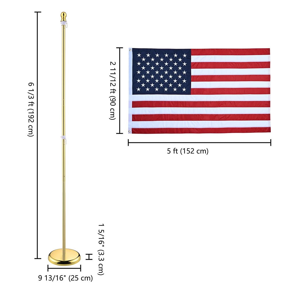 - Includes 2-pack 6 ft indoor sectional flag pole + ball finial/ eagle finial + 3x5 Ft American national flag + base stand and accessories