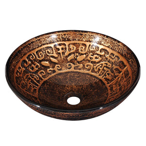 16" Antique Totem Circular Tempered Glass Vessel Bathroom Sink