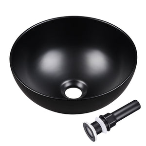 Aquaterior Black Sink Bowl Bathroom Vessel Sink with Drain 12"