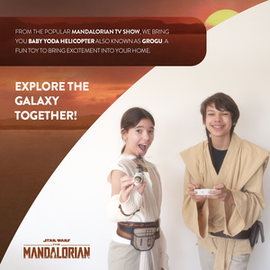 Get ready to have a blast in the sky with the Star Wars The Mandalorian The Child 2CH Mini IR RTF Electric RC Helicopter! The Child helicopter has a durable lightweight polymer body so you can rest your worries about breaking anything. Controlling this RC helicopter is a breeze and great for people of all skill levels. Featuring a coaxial rotor, a single rear rotor for precise turning, and an IR motion sensitive technology that detect nearby objects and is programmed to move away from them. On the transmitter you press the motion sensor launch button to get started, hold your hand underneath the helicopter to keep it hovering up in the air and when you're done you can turn it off by pressing the motion sensor land button. The LED lights brighten up the night sky when flying. No assembly required! A must have for RC fans, get the Star Wars The Mandalorian The Child 2CH Mini IR RTF Electric RC Helicopter today!