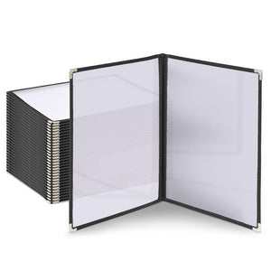 Present menus and other documents with our 8.5x11 Plastic menu covers 2-page, 4-view folders. The clear, transparent material makes it easy to erase menus and documents quickly, ideal for restaurants and homeschooling. This set of 30 folders offers stylish protection and a refined presentation for your menus, editable morning menus.