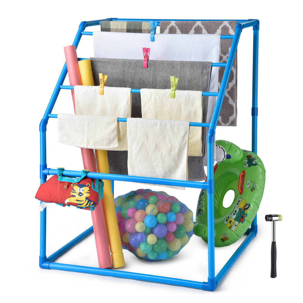 - Perfect organizer for facial towel, bath towels, kickboards, swimming rings, pool floats, paddles, pool noodles