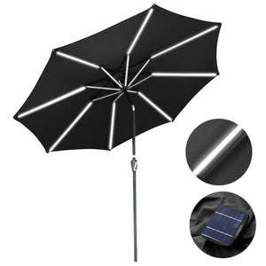 Patio Umbrella with Solar Lights Tilt Umbrella 10 ft 8-Rib
