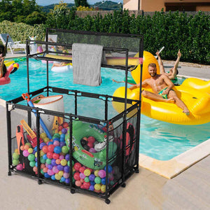 - With a top noodle holder to store pool noodles; you can hang towels on the bars for convenient use