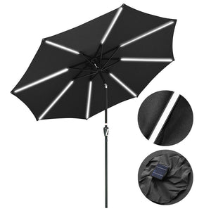 Solar Patio Umbrella Tilt Table Umbrella w/ Lights 9ft 8-Rib